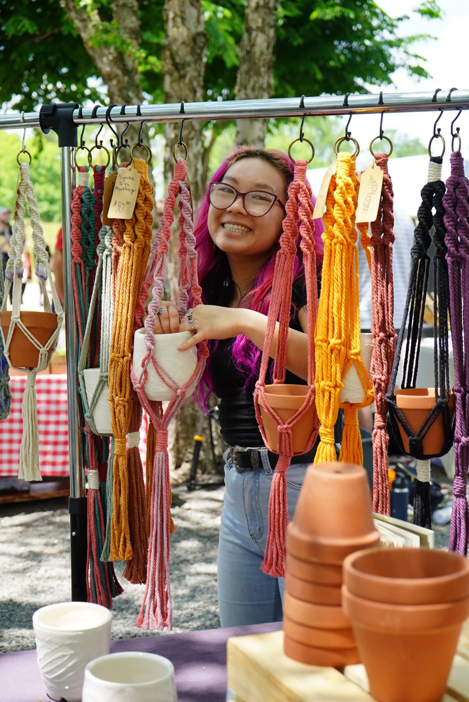 Hi! My name is Adela (she/her). I’m the owner and maker behind The Plondering, a mixed-fiber macramé & crystal goods shop based in North Carolina. Macramé and I met in 2020 while I was working at a local plant shop. It was early pandemic days, and I spent most of that time helping feed the new wave of pandemic plant parents with everything plant-care. As one of those plant people myself, I was having a hard time finding high-quality plant hangers that weren’t mass-produced, and in colors and sizes I wanted. I decided that I would make those plant hangers, and it quickly tumbled into the eclectic, macramé mish-mash you see now.
